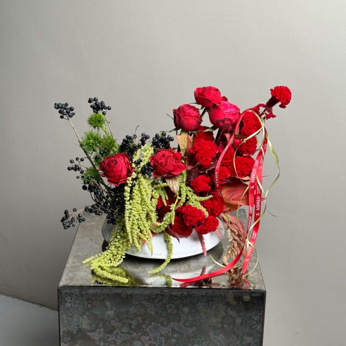 به همین علت استفاده از رنگهای قرمز (نمادی از عشق و گرمای خانواده) و نارنجی (اشتیاق) را در طراحیهای باکسهای گل استودیو آشکین بیشتر مشاهده میکنید.
