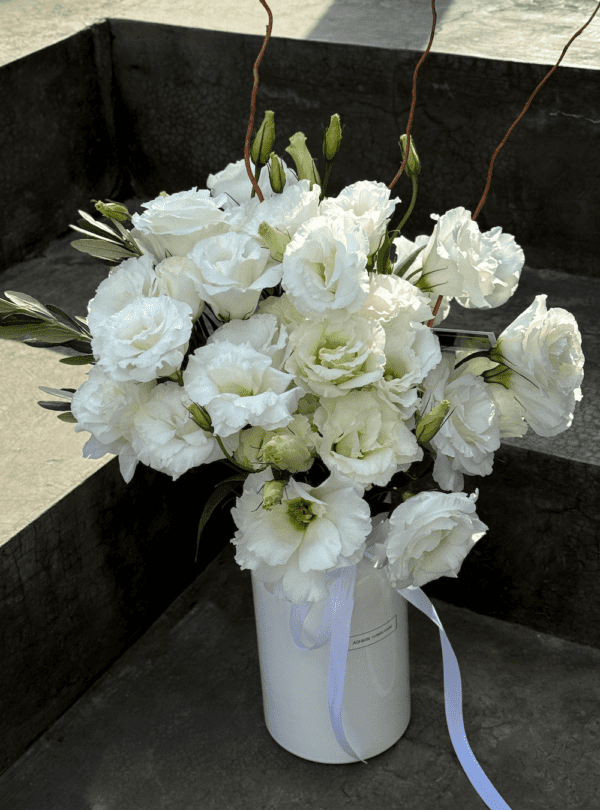 رنگ سفید نشان دهنده خلوص و بی گناهی است و لیسیانتوس نیز از این قاعده مستثنی نیست. زیبایی ساده گل لیزیانتوس سفید نشان دهنده تجمل و ظرافت است و برای دسته گل عروس یا هدیه ای برای عروس ایده آل است.