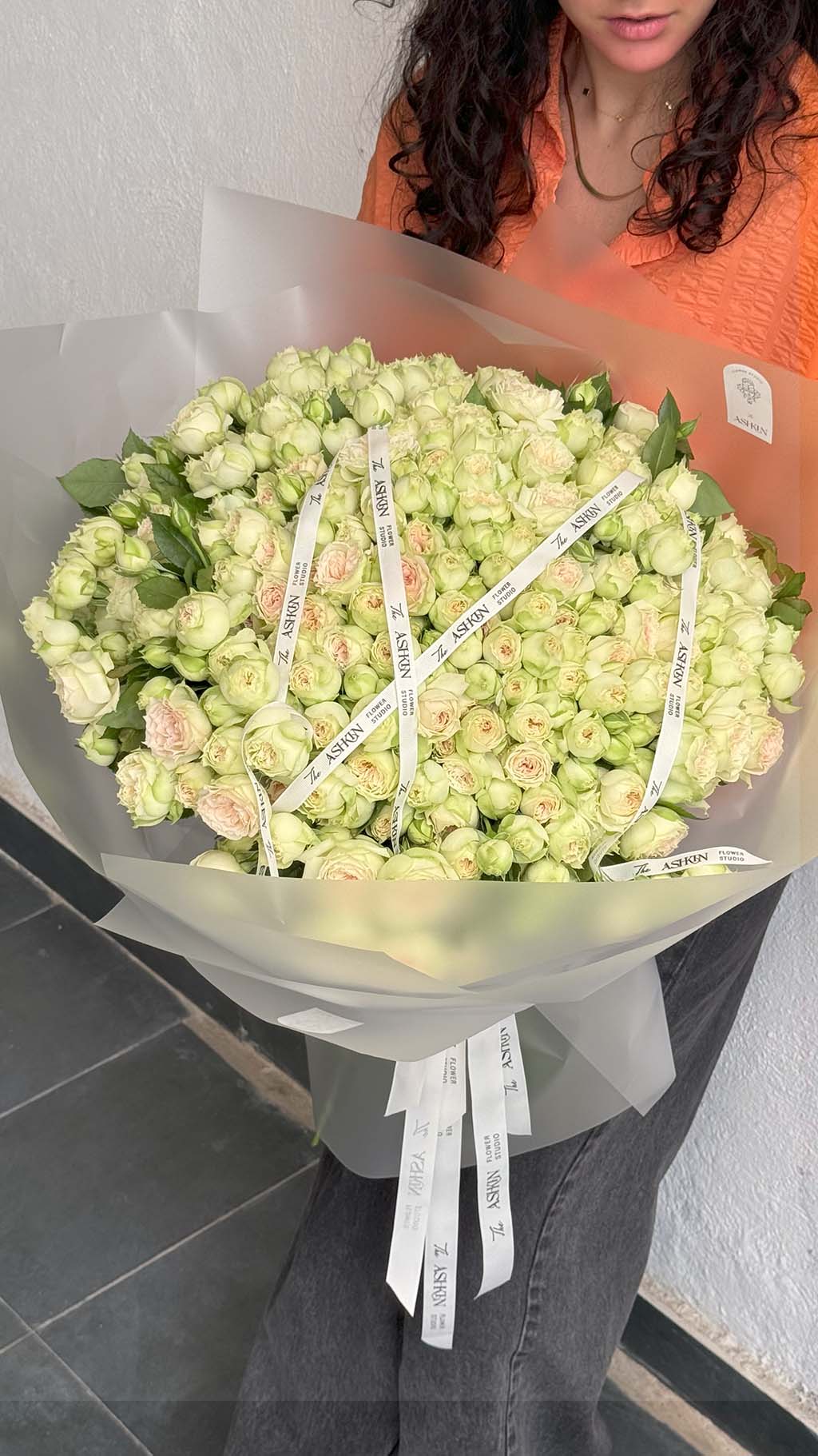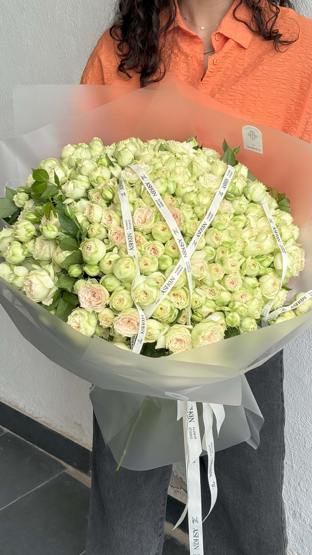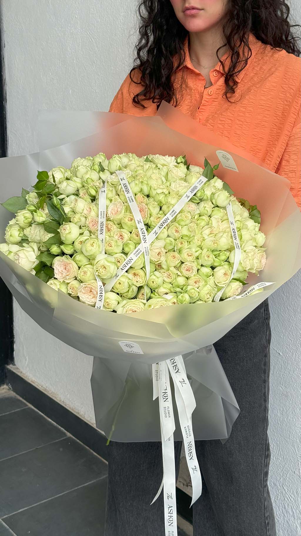 دسته گل رز ژولیت مینیاتوری لیمویی سایز بزرگ