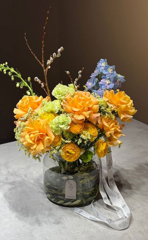 باتوجه به فصلی بودن گل‌ها ممکن است با حفظ ساختار کلی این دیزاین، گل‌های دیگری با هماهنگی شما جایگزین شود.