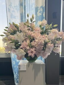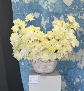- گلهای به کار رفته در این دیزاین: ولنتاین سکرت سفید و دلفینیوم آبی